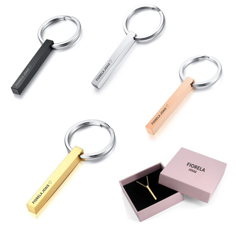O chaveiro é em aço inoxidável 316 resistente à corrosão, o dourado é revestido em ouro 18K, o rose gold é ouro rosa e o preto é revestido com cerâmica preta fosca. Aproveite, seu chaveiro não perderá a cor!